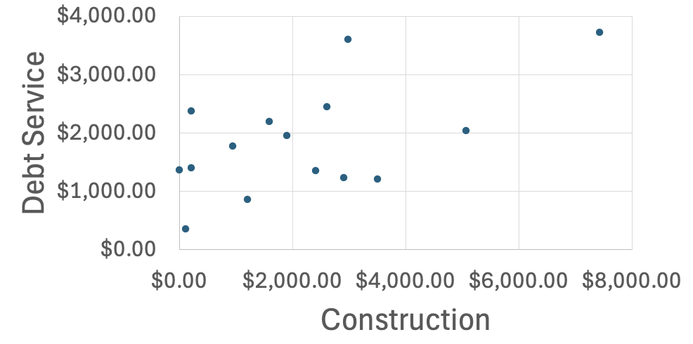 How I interpret this number: if the enrollment of the school remains constant for the next 30 years, and no additional major renovations are done during this time, the final column is the cost of construction per student-year of instruction. Note that this does not include more routine maintenance costs for custodial services, groundskeeping, utilities, and minor repairs and renovations, which are paid from the General Fund and likely account for much of the $3,400/student going to “Operations Maintenance and Other” and “Capital Expenditures”. In other words, the costs above only account for the cost of creating the building, not maintaining it.
