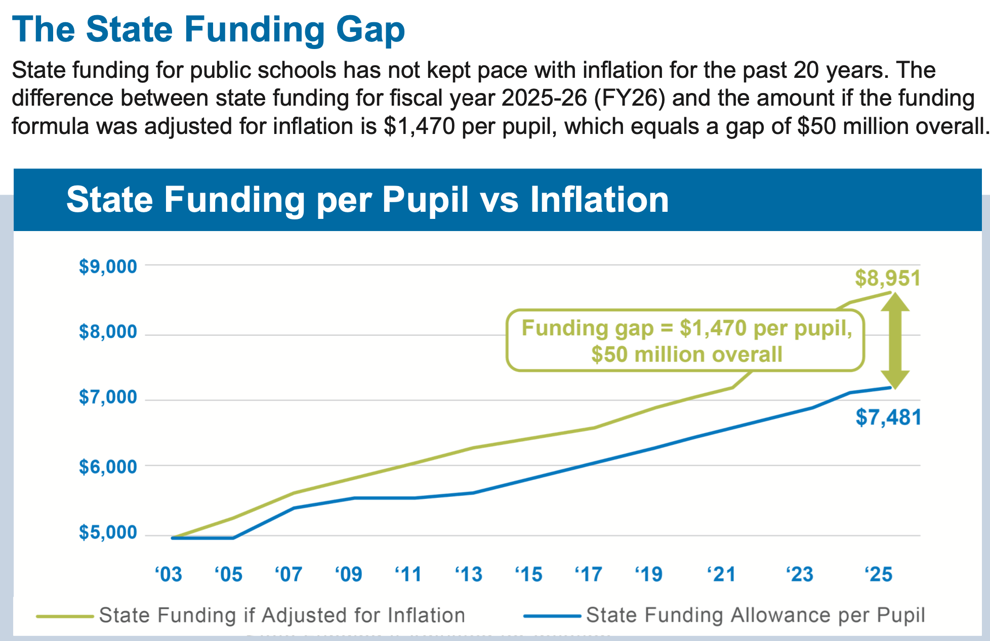 $32,000 is about 42% higher than it was in the 2004-2005 school year (when expenditures were $14,000 per student, equivalent to a little over $23,000 in 2025 dollars).